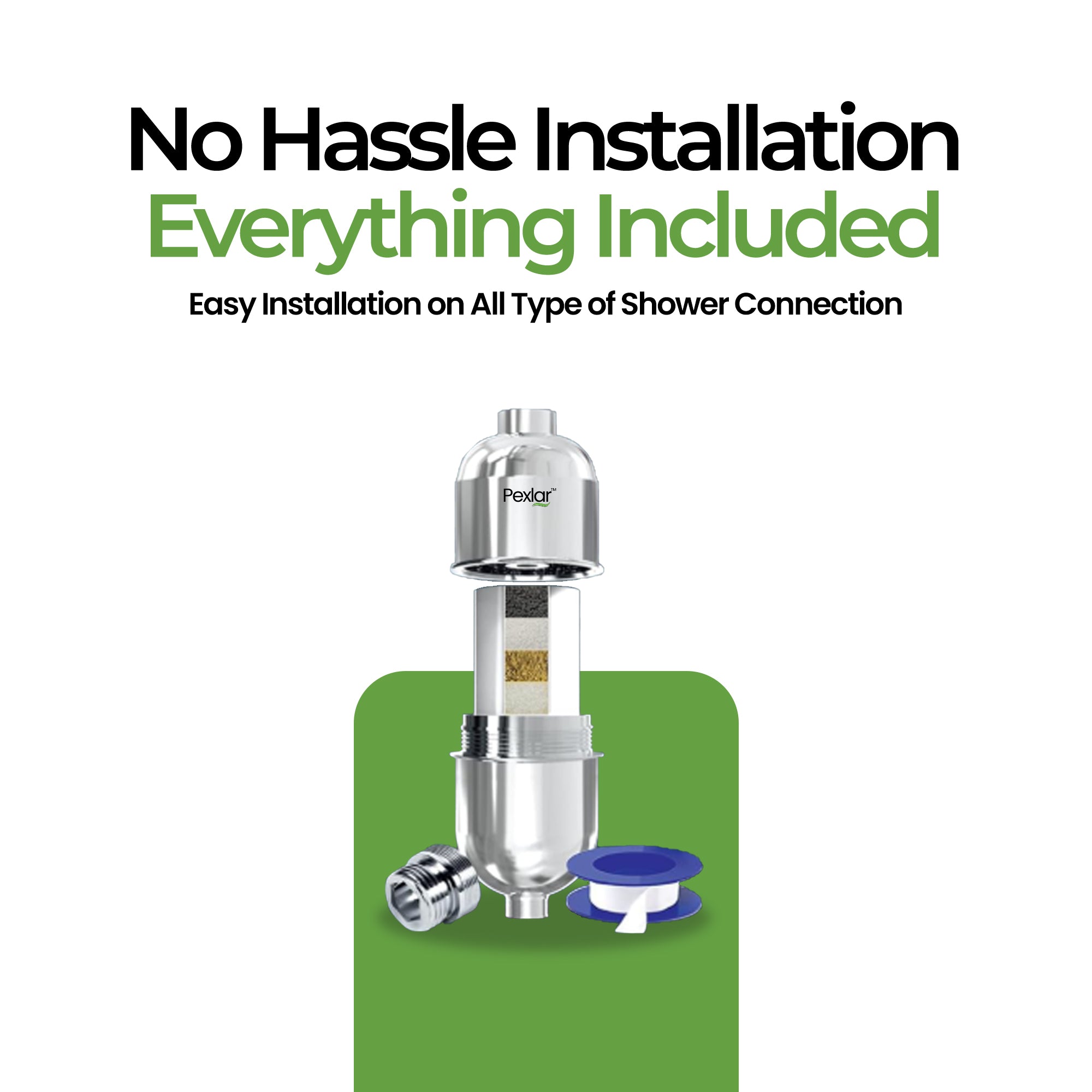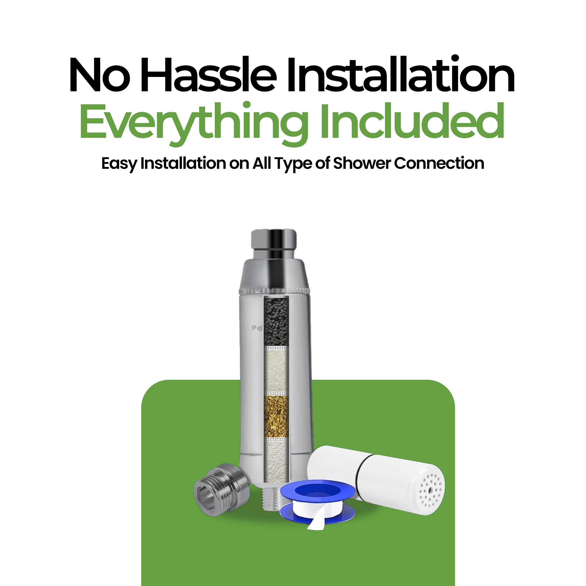 • Includes Essential Accessories: Comes with washers and Teflon tape for a secure, leak-resistant connection. Includes: 1 Shower Filter, 1 Installed Cartridge, 2 Washers, 1 Teflon Tape.