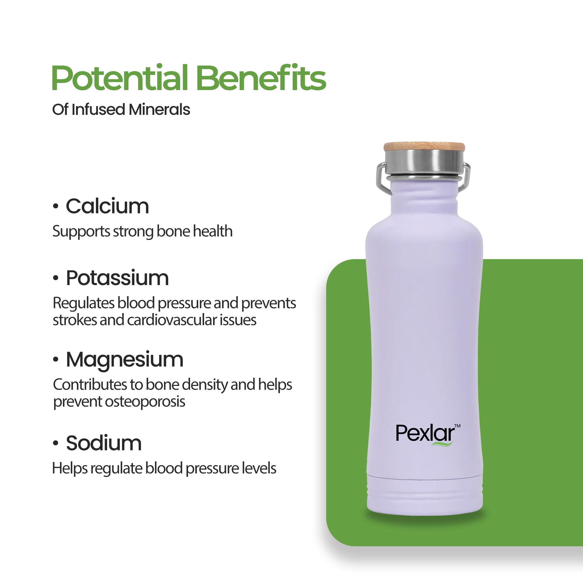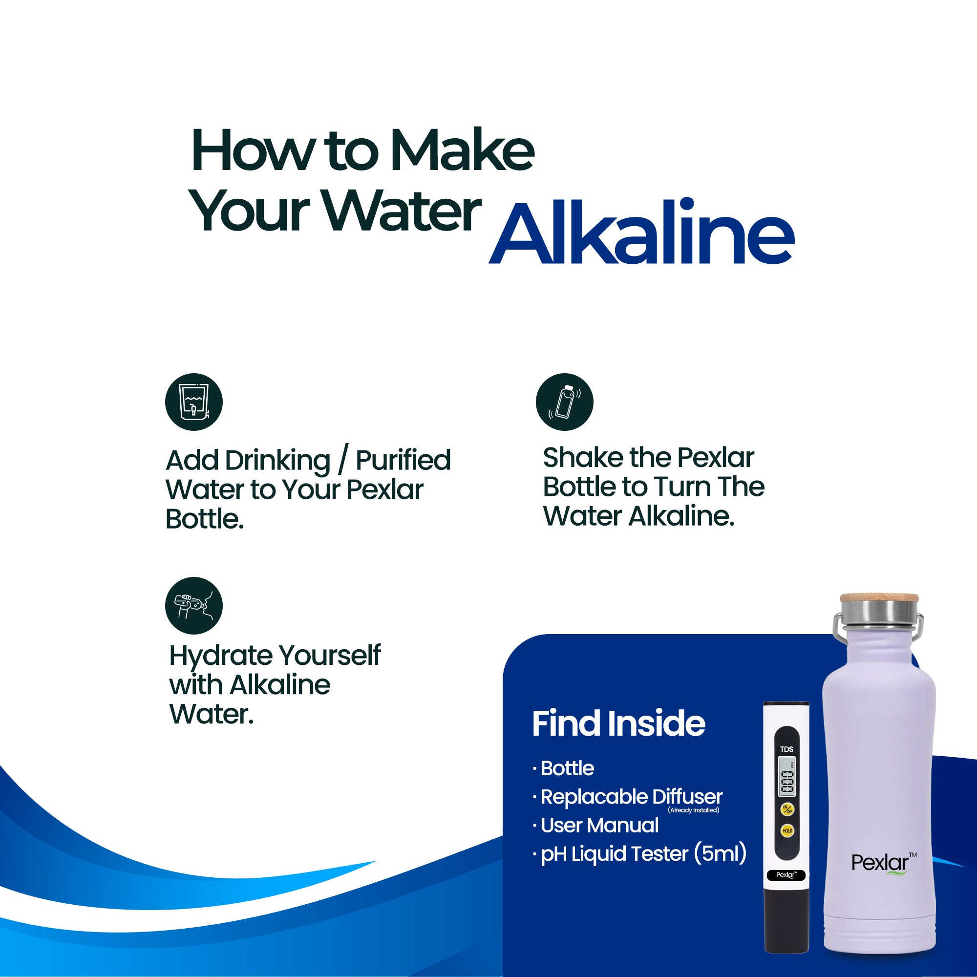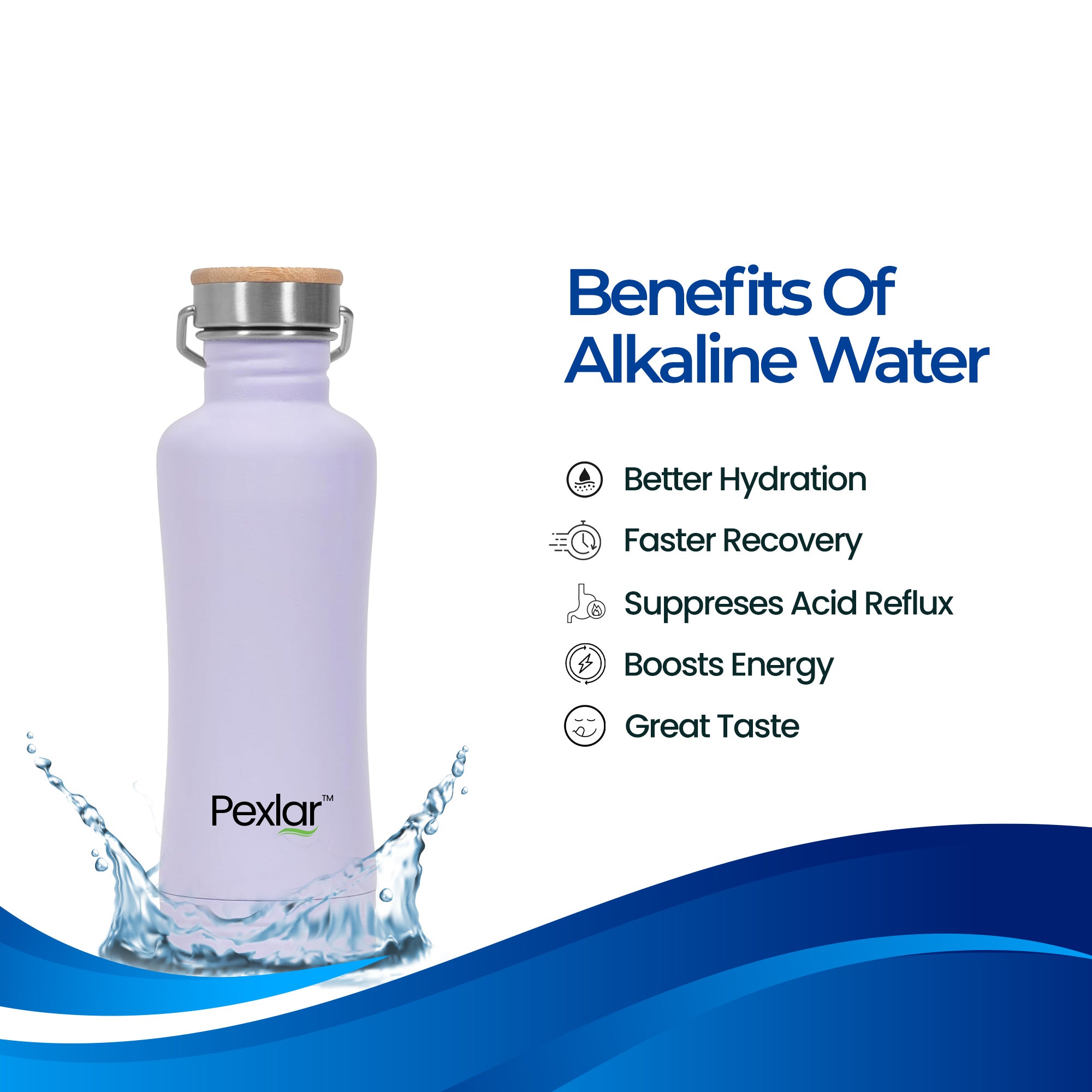 Stay refreshed with mineral-infused, alkaline water on the go. This compact 850 ml Pexlar bottle delivers antioxidant, antibacterial, pH-balanced hydration.