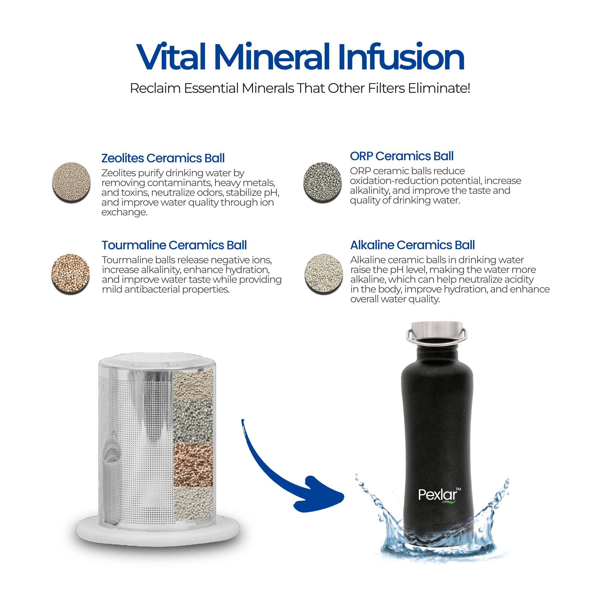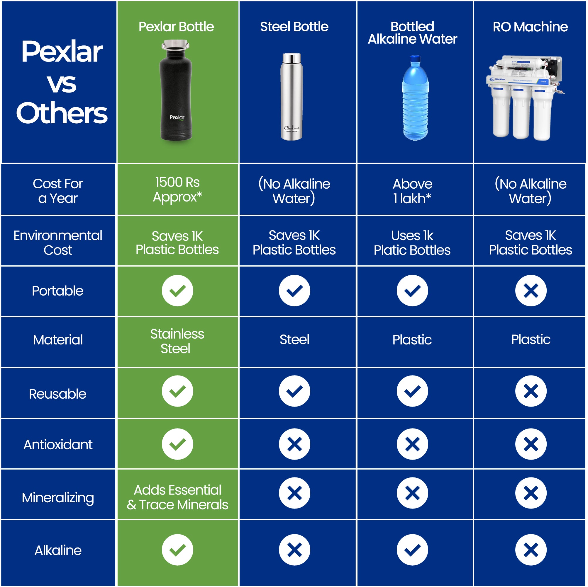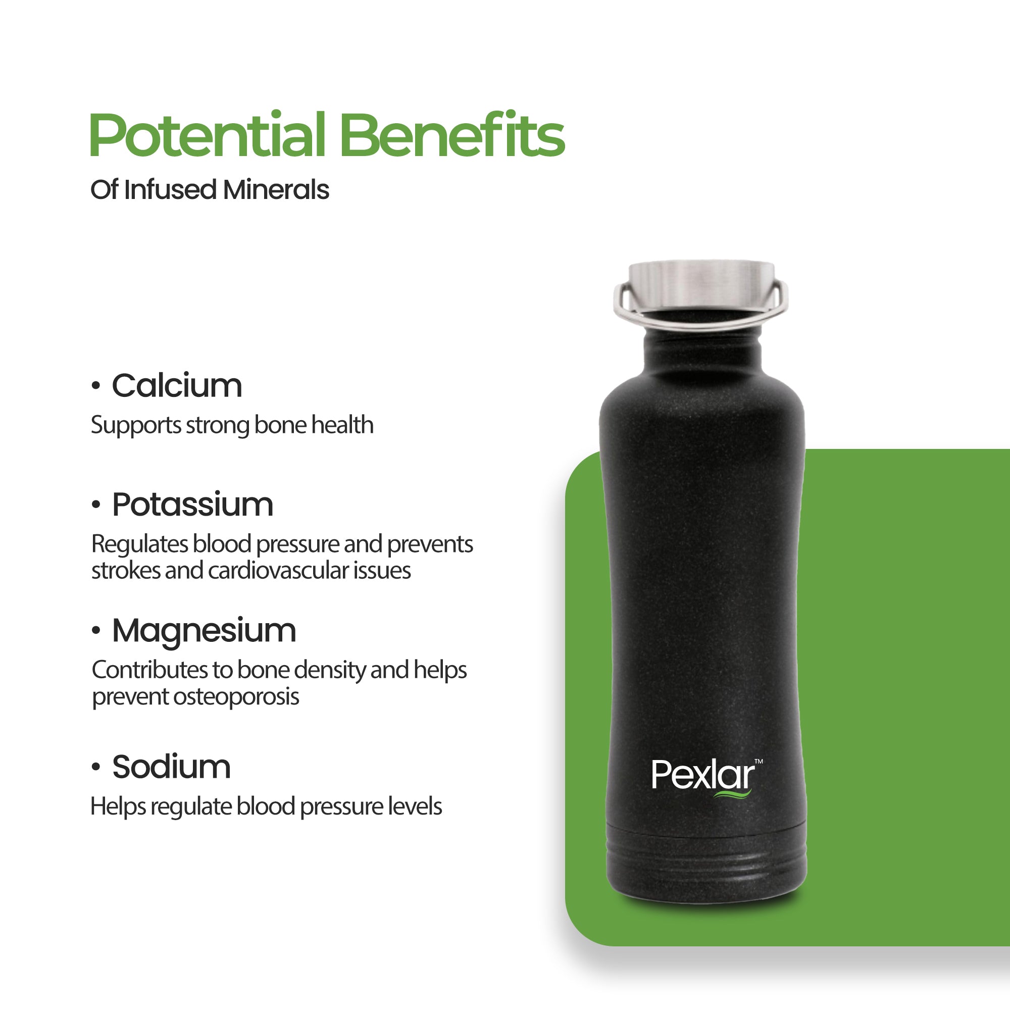 Stay refreshed with mineral-infused, alkaline water on the go. This compact 850 ml Pexlar bottle delivers antioxidant, antibacterial, pH-balanced hydration.