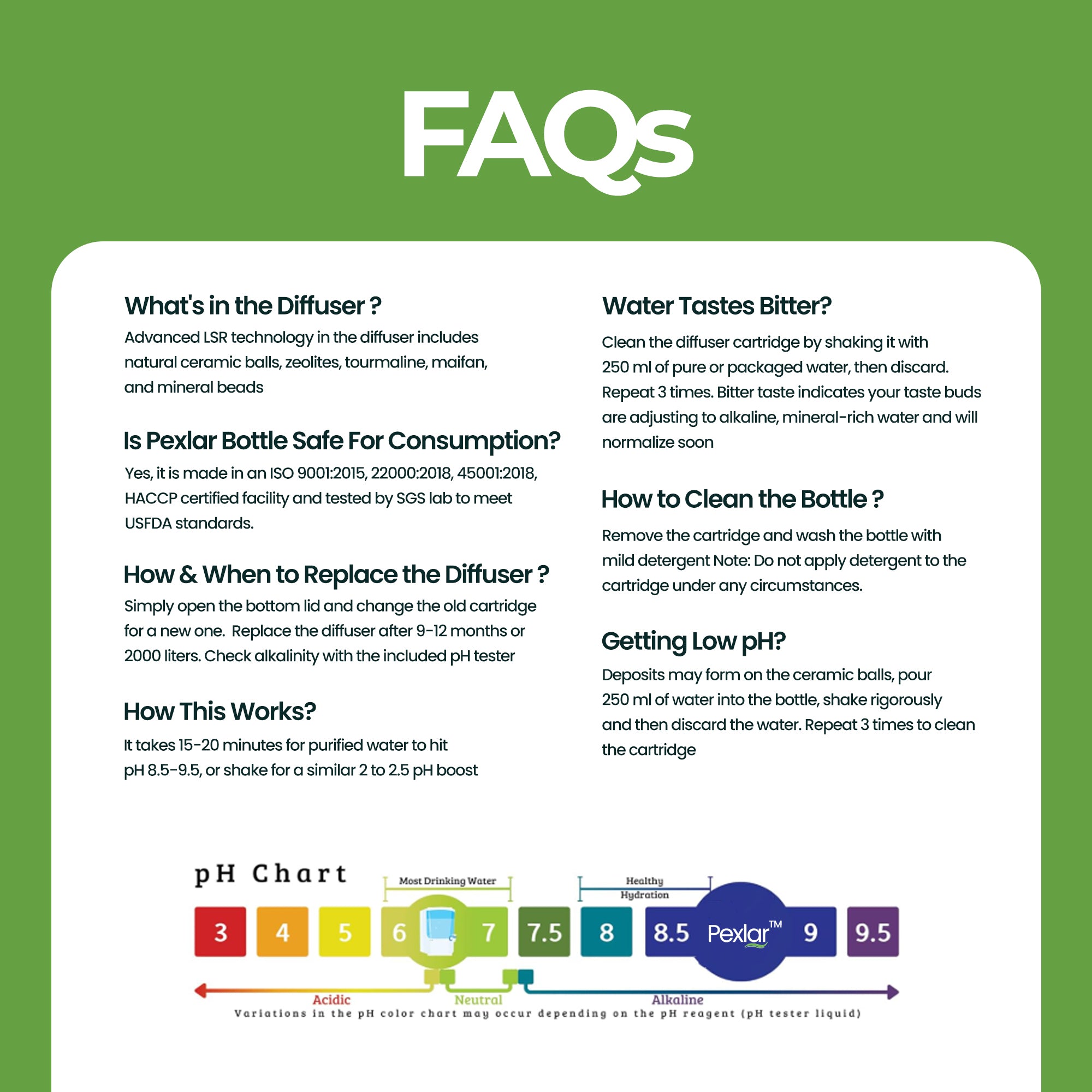 Its compact and lightweight design makes it ideal for everyday use—whether at the office, gym, or on the move. With a lifespan of up to 2000 liters, this durable bottle offers sustained performance, while the included pH tester and user manual help you monitor water quality. Stay hydrated and revitalized—everywhere, every day.